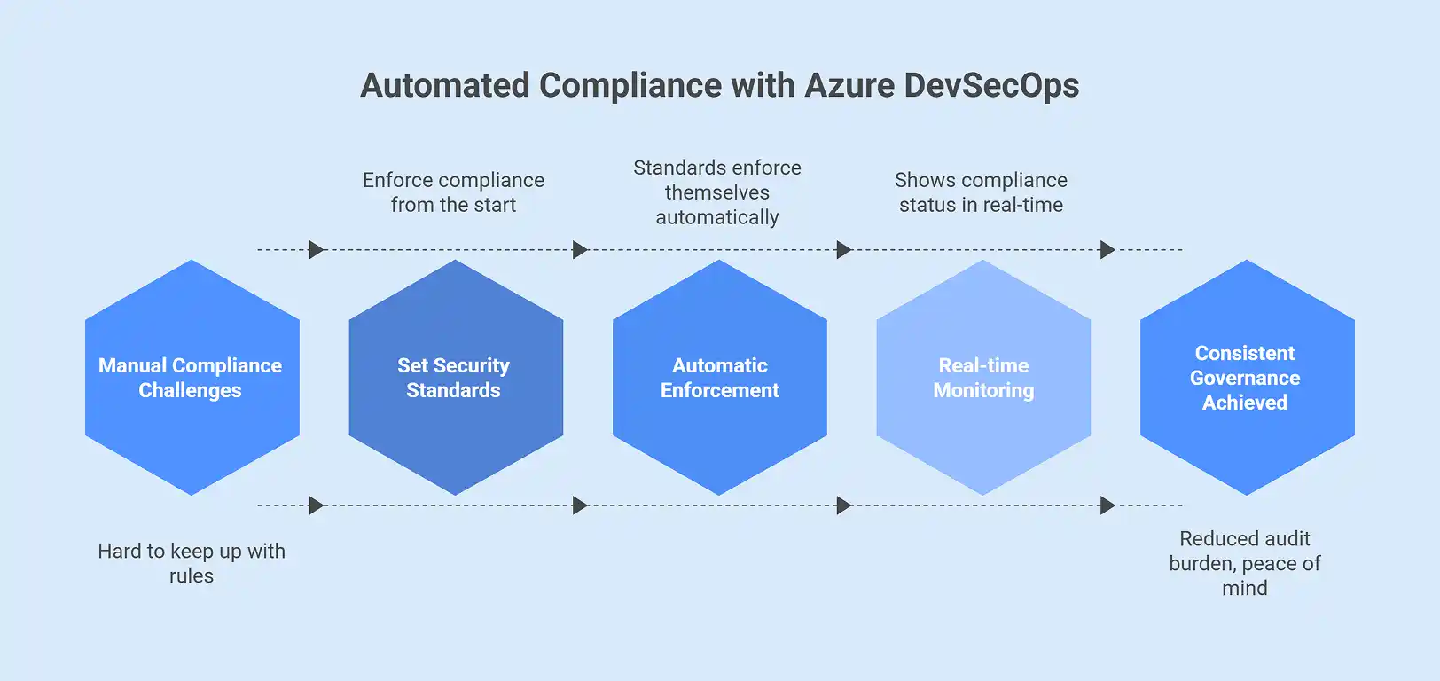Keeping up with rules like GDPR, HIPAA, or SOC 2 can be hard. This is especially true if you are adding new features every day. By use of policy-driven automation, Azure DevSecOps manages compliance.