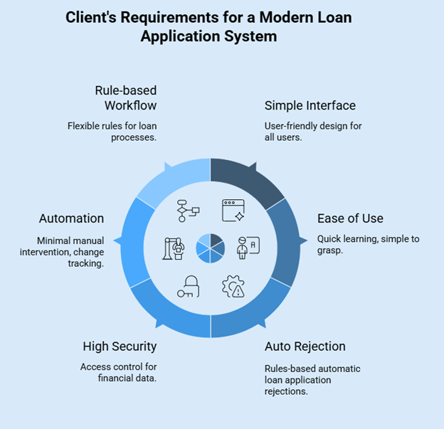 The client wished to establish and change system rules. These guidelines would help control loan approvals or rejections.