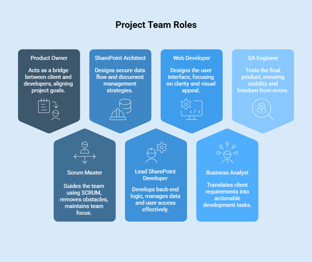 - SharePoint Architect: As one of the best app development companies, we provided a SharePoint Architect who had expertise in data structure and integration. They assisted in designing components of the system, including data flow inside safe environments and document handling.