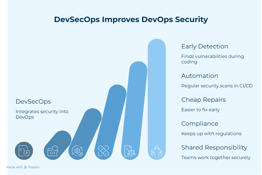DevSecOps doesn’t just add security at the end of the pipeline; it adds it at every step. This is often called “shift-left security,” which means finding and fixing security gaps early in the development process.