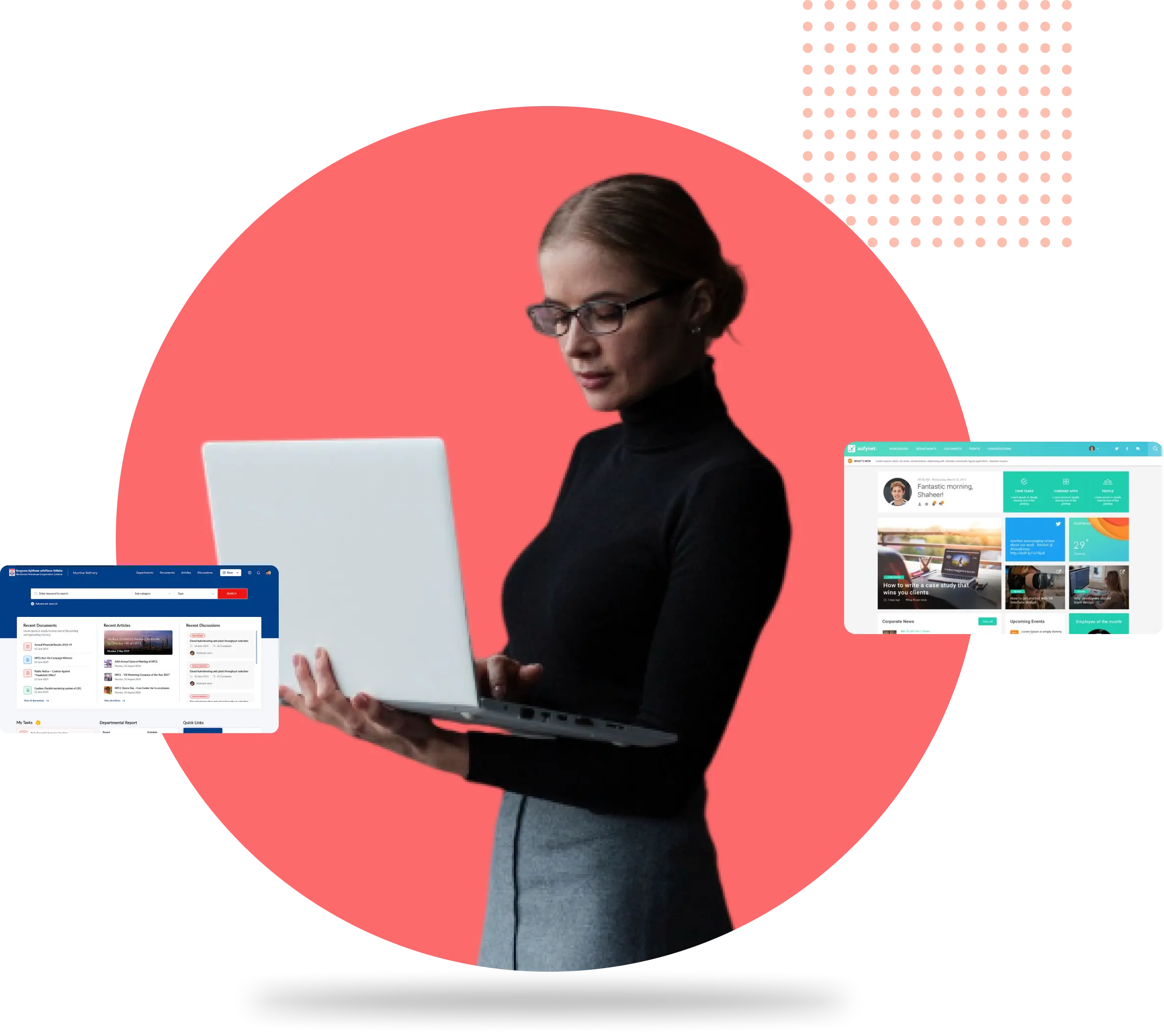 We custom-build SharePoint web portals tailored to your company to amalgamate all your critical business applications which include CRM, ERP, and other third-party tools, into one single digital environment. The single access point improves visibility into the data and thereby the cross-functional collaboration by amalgamating pieces of business-critical information. Your organization can effectively manage user access, including granting single sign-on (SSO) and permissions based on roles, and ensure that the end-user experience is secured and smooth.